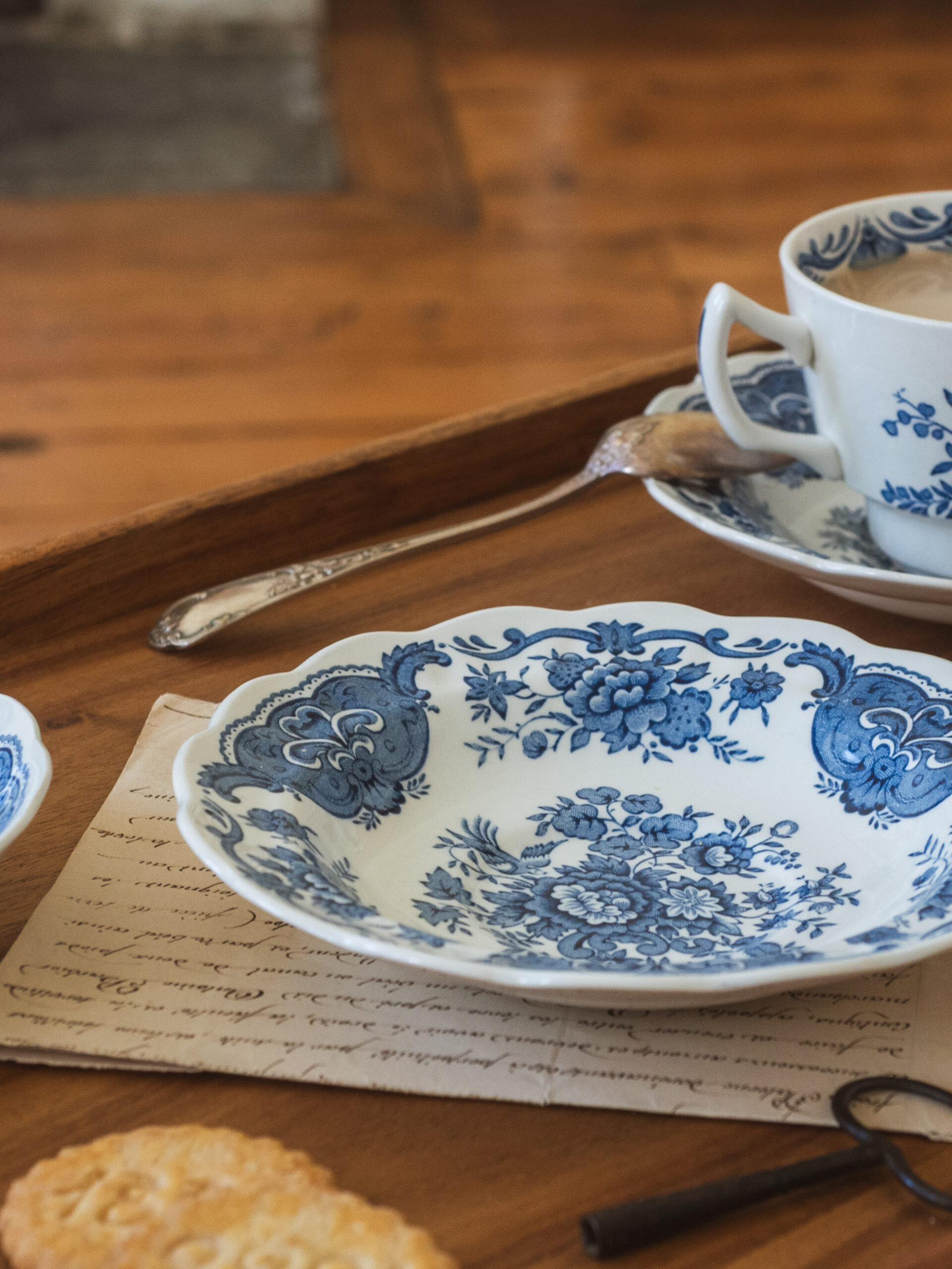 Une soucoupe détournée en assiette à mignardises ou encore en assiette à pain, vide-poche ou dessous de théière, en fonction des usages actuels.